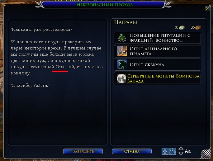 Скрин 01 — наверное правильнее построить фразу — Фарамир велел не убивать зверей без нужды.