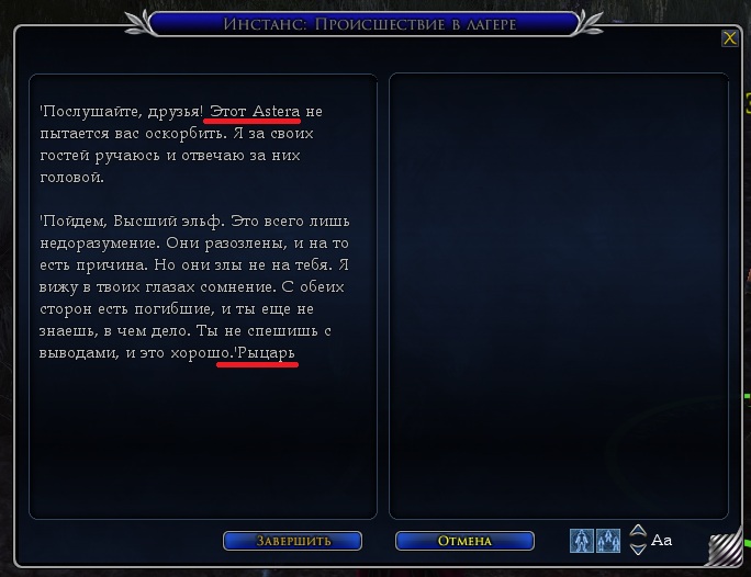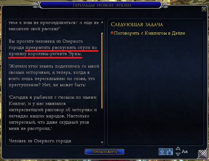 Скрин 100 — двусмысленное построение предложения получилось. Может «Именем королевы-регента Эрны вы требуете прекратить распускать слухи»?