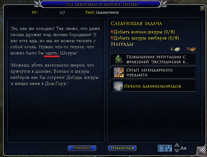 Скрин 114 — тут наверное «надеть», на себя же. Хотя если «одеть гномов в тёплое». Без контекста сложно однозначно сказать