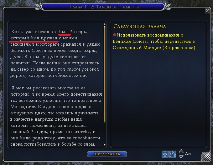 Скрин 155 — 1) пропущена запятая после «сказал»; 2) сначала рассказ идёт о рыцаре как будто это «ОН», потом резко меняется пол. Подозреваю, что текст квеста зависит от пола и класса персонажа. Есть возможность изменить текст так, чтобы повествование сразу шло про женского персонажа? И с некоторыми классами могут быть проблемы, у них есть феминитивы