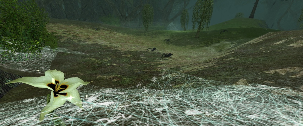 От южного заграждения необходимо свернуть влево и пройти через паутину. Здесь будет несколько небольших волн пауков. |