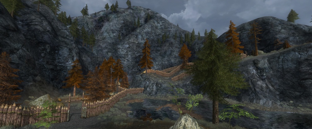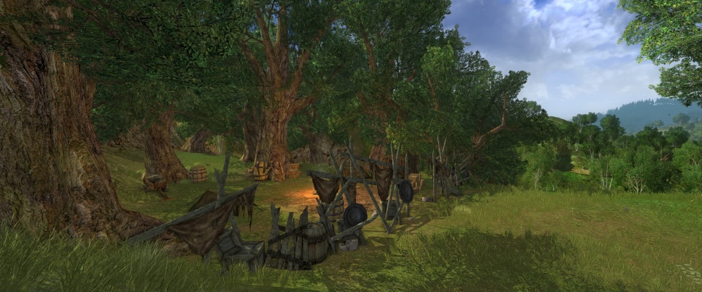 | Южные заграждения перекрывают путь на юго-запад, к Серым Гаваням. Этот путь был отрезан гномами несколько лет назад, когда гоблины наводнили Рат Тераг. Дорога пришла в запустение, а путь эльфов к Гаваням стал долгим и трудным. Теперь они вынуждены идти другими тропами, огибая заграждения с юга. |
