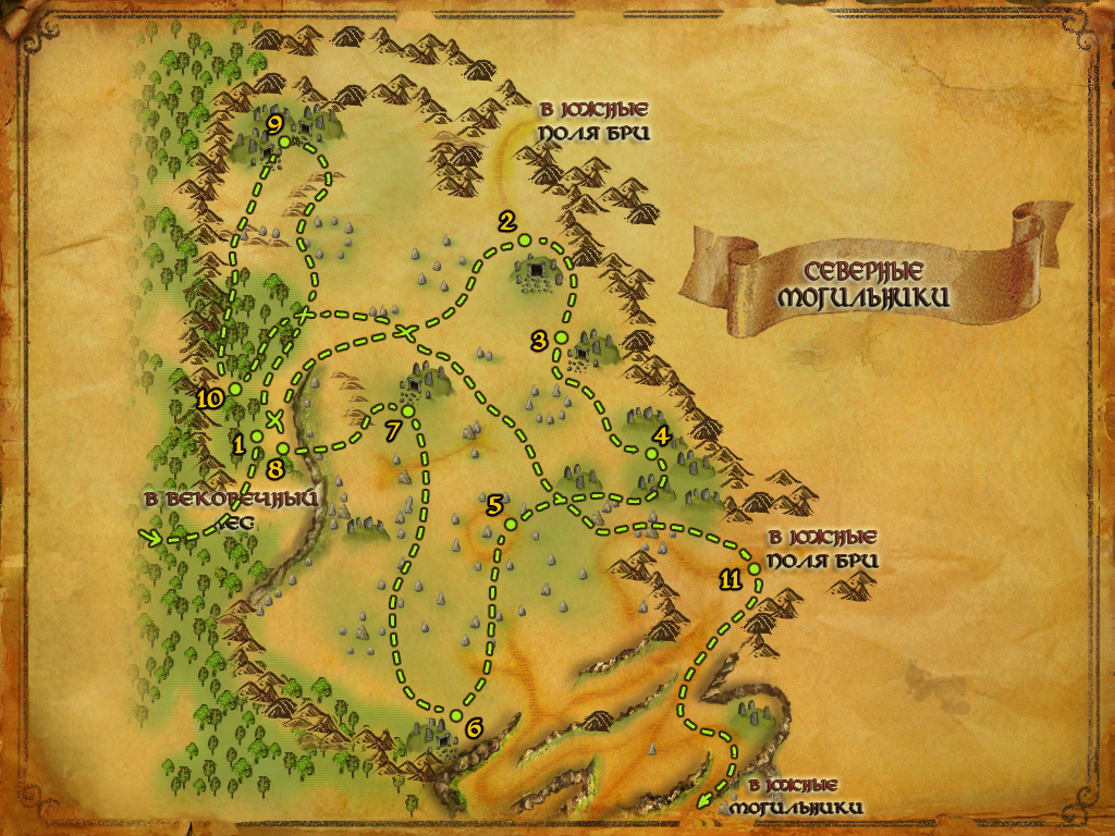 | Тропа, что ведет в Могильники и начинается у Великого восточного тракта, проходит через северные могильники, заселенные умертвиями. |