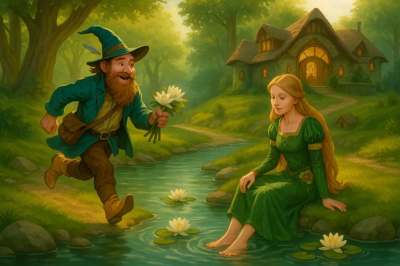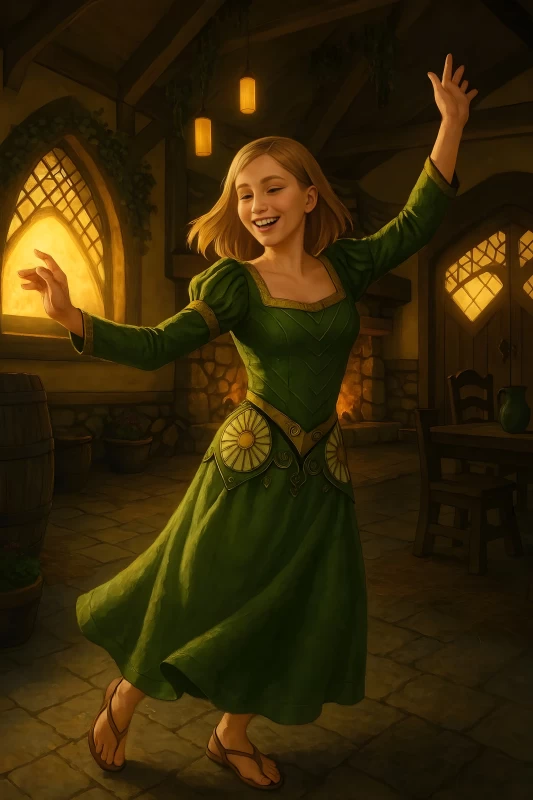 | Золотника — дочь речной прохладной мглы, Её волосы, как солнце, так светлы. Соберёт она кувшинки в тишине, Напевая песни ветру и волне. Лес ей дом родной, и каждый лист и сук Слышит нежный звук её прекрасных рук. Она — сердце леса, он — его душа, Жизнь течёт для них, покоем дорожа. Эй, Том-бом, Бомбадилло! Лес поёт с тобой! Солнце осветило Домик над рекой! Там моя царица, Дева-Золотника, Словно в сказке птица, Светлая от лика! | ![]() |